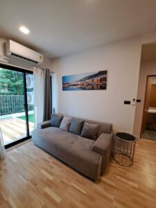 ARISE condo 66 sqm, 2 bedrooms + 2 toilets, 1 living room, ground floor with big garden, close to pool but quiet.